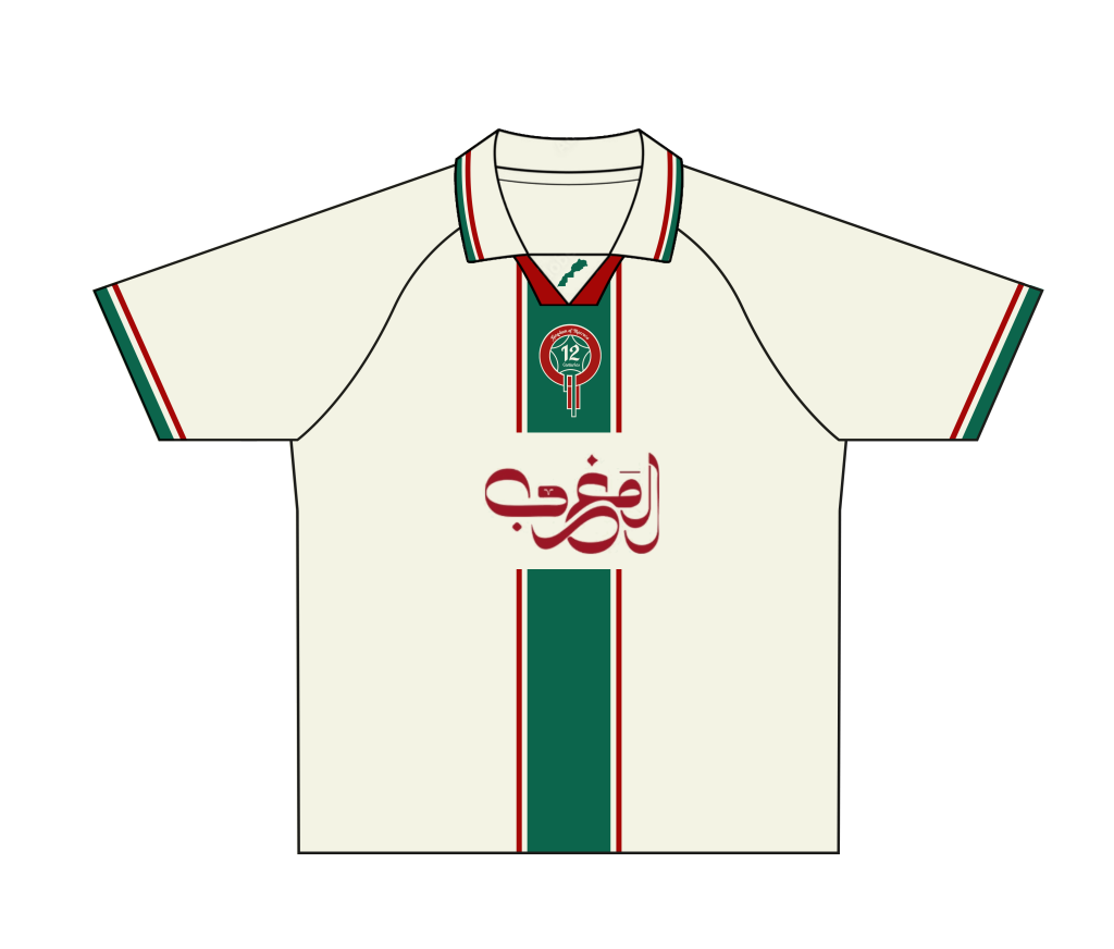 The concept was to design a fresh, unofficial version of the Moroccan football jersey, stepping away from the traditional styles and contexts. We introduced a streetwear-inspired oversized fit combined with vintage design elements to celebrate and represent Moroccan culture.